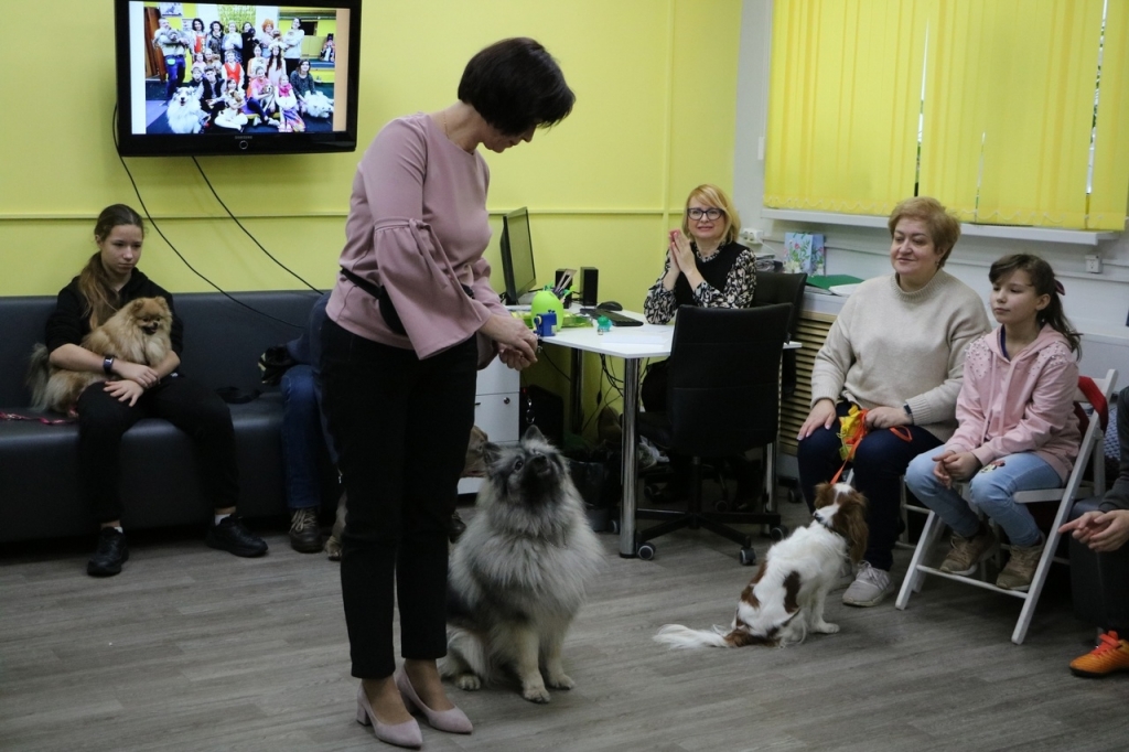 Руководитель клуба Евгения Романовская рассказала о деятельности клуба и этапах отбора четверолапых помощников для участия в анималотерапии. В клубе создана «Школа щенков». Именно на данном этапе тренер-наставник определяет кандидатов - учитываются характер, способности щенка, его обучаемость. Собаки, успешно сдавшие экзамены, участвуют в социальных проектах организации.