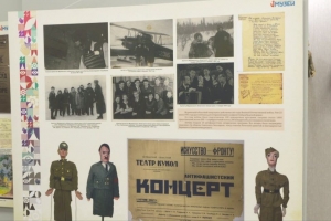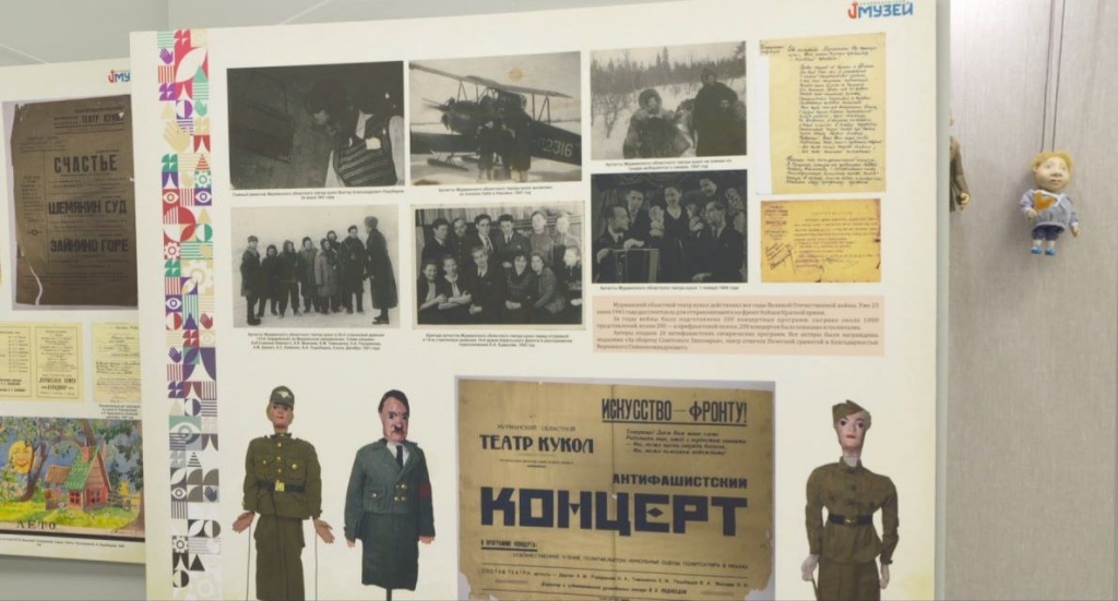 В 1941 году, уже на следующий день после начала Великой отечественной войны, актеры театра уже давали представления для бойцов, отправляющихся на фронт. Об этом на выставке рассказывают агитационные плакаты и афиши того времени. Всего за годы войны было представлено более ста концертных программ, которые исполнялись на более чем тысяче фронтовых концертах. В знак признания за работу все участники труппы кукольного театра были награждены медалями «За оборону Советского Заполярья», а Верховный Главнокомандующий И. В. Сталин выразил благодарность театру. Коллектив также получил почетные грамоты от Министерства Вооруженных Сил и Министерства Здравоохранения за свою важную работу в вооруженных силах и помощь раненым.