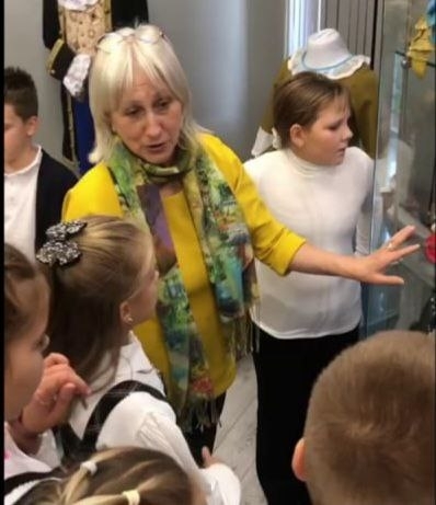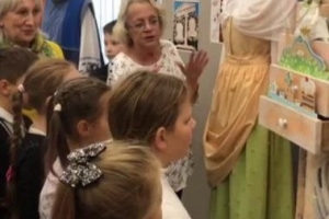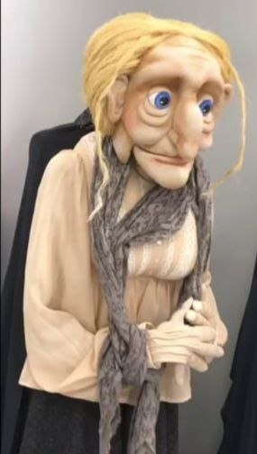 «Каждая ниточка отвечает за какое-то движение у куклы. Или эти вот две нитки за ноги, эти вот – ручки у нас. Вот здесь вот наклоны головы. Это настоящая марионетка. Она очень сложная», - рассказывает ребятам художник- бутафор Надежда Васильевна Дарева.