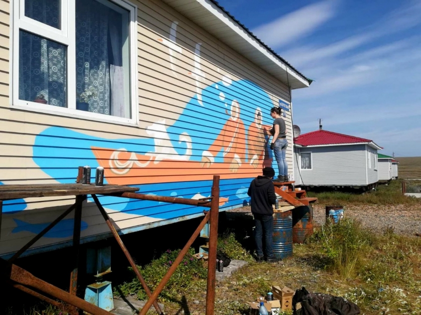Мурманские художники провели серьезные работы в эскимосском селе Новое Чаплино на Чукотке. Проект по преображению села поддержали WWF России, Агентство развития сельских инициатив и сами сельчане: добраться до самой восточной особо охраняемой природной территории России непросто, дорого и долго. Уже даже поговорка сложилась: «Редкий волонтер долетит до «Берингии». В составе нацпарка расположено село.