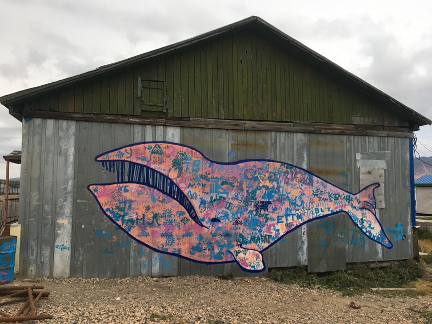 В итоге, что ни делается (не делается) – все к лучшему! Творческий десант придумал такую тему, участниками которой стали все дети Нового Чаплина: на стене деревянного дома они нарисовали гигантского кита и написали слова на чукотском и эскимосском языках.