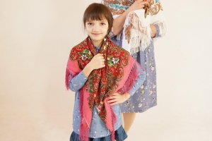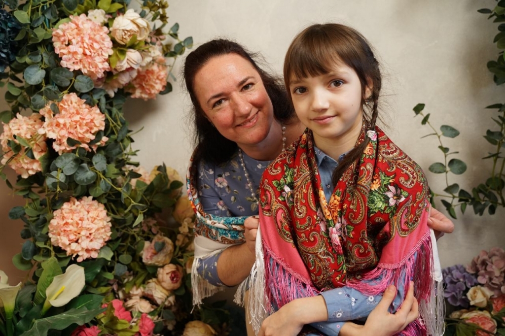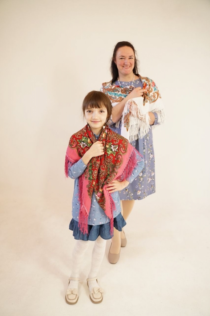 На фотосъемку глава семьи приехать не смог — был в море. А мама и дочка на итоговых фото — настоящие русские красавицы: посмотрите, как органично на их плечах лежат яркие платки!