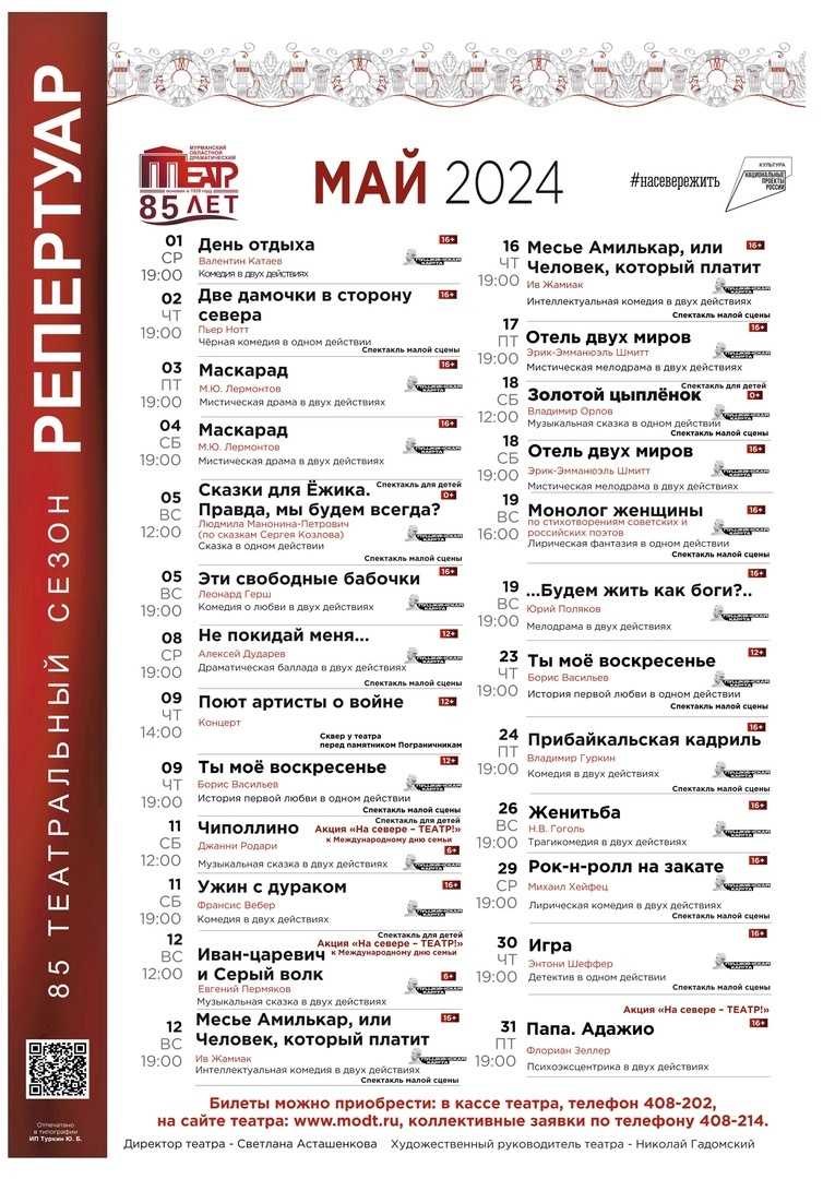 Репертуар Мурманского драматического театра на МАЙ Билеты на постановки продаются в кассе театра и онлайн. « Вернуться к списку статей