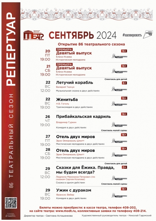 Афиша Мурманского областного Драматического театра на СЕНТЯБРЬ