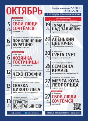 Афиша Драматического театра Северного флота на ОКТЯБРЬ 6+