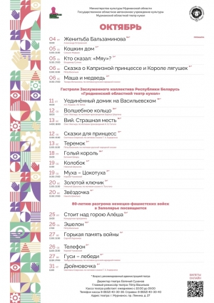 Афиша Мурманского театра кукол на ОКТЯБРЬ 0+